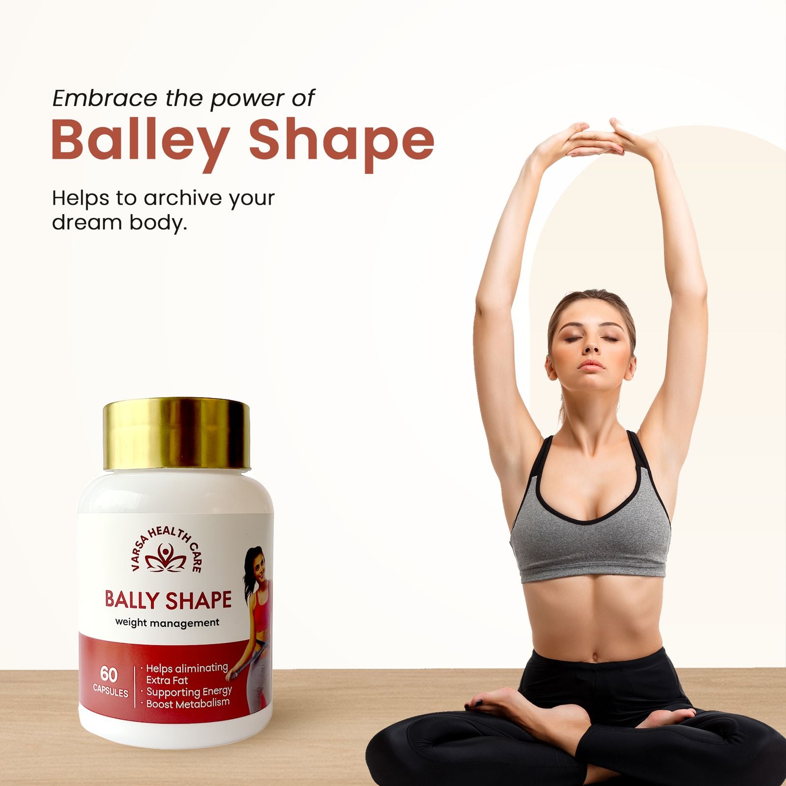 Achieve a fitter, more confident you with Varsa Health Care Bally Shape Capsules, a natural supplement designed to support effective weight management. These capsules help eliminate excess fat, enhance metabolism, and provide lasting energy to keep you active throughout the day.