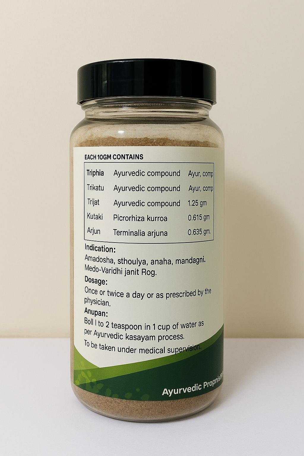 Each serving combines time-tested Ayurvedic compounds like Triphla, Trikatu, Trijat, Kutaki (Picrorhiza kurroa), and Arjun (Terminalia arjuna) – known for their digestive, detoxifying, and metabolism-boosting properties.
